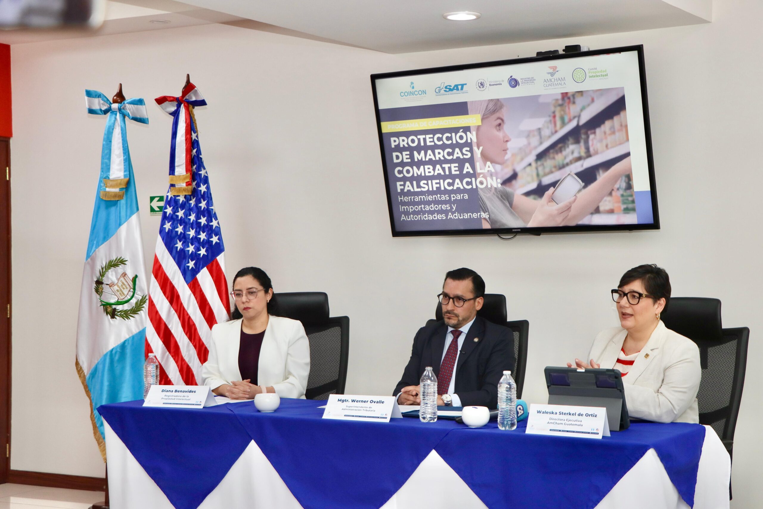En un esfuerzo conjunto por combatir la falsificación y promover un entorno favorable para la inversión extranjera directa, la Cámara de Comercio Guatemalteco-Americana (AmCham Guatemala), en alianza con la Superintendencia de Administración Tributaria (SAT) y el Registro de la Propiedad Intelectual del Ministerio de Economía (MINECO), realizó una conferencia de prensa para presentar los avances y próximos pasos del programa “Protección de marcas y combate a la falsificación: herramientas para autoridades aduaneras”.
