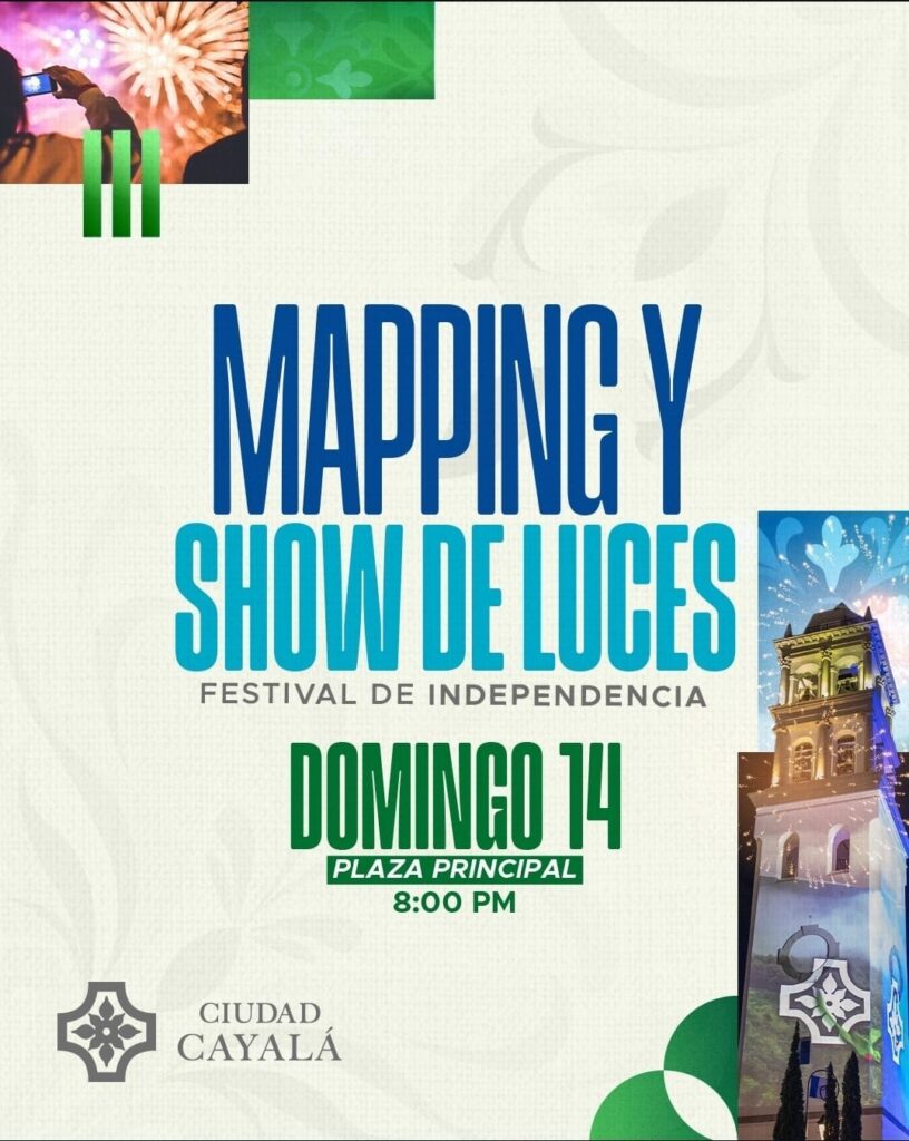 5. Mapping y Show de Luces en la plaz principal, desde las 8:00 PM, donde la arquitectura icónica de Cayalá cobrará vida para rendir homenaje a nuestra tierra.