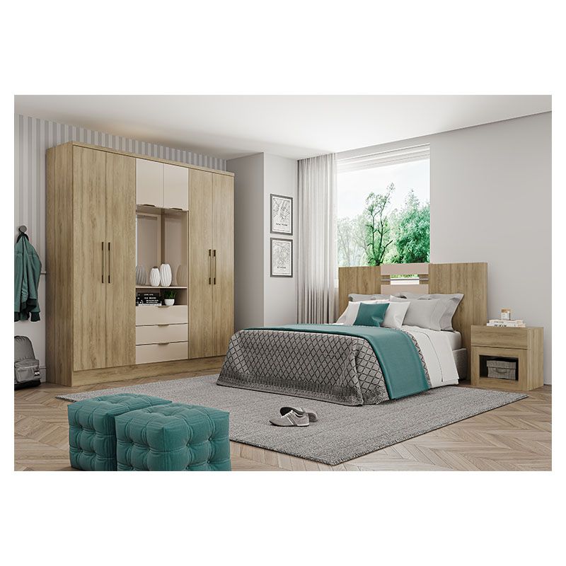 • El ropero de 6 puertas en acabado cognac, es espacioso, sofisticado y diseñado para mantener el orden con estilo.