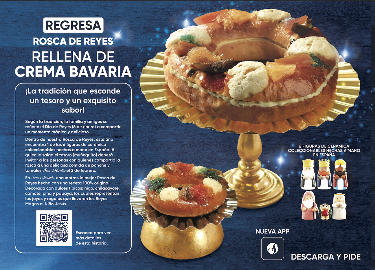 Las tres versiones de Rosca de Reyes estarán disponibles en tiendas San Martín, así como en servicio a domicilio y a través de la página web y de la nueva APP del 27 de diciembre hasta el 6 de enero 2026, para disfrutar y compartir esta tradición: