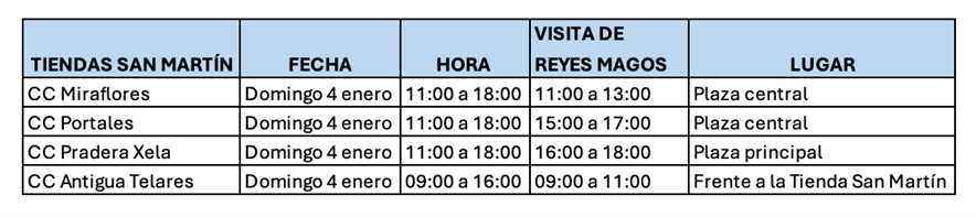 San Martín invita a las familias guatemaltecas a vivir esta tradición, participando en las actividades especiales que se llevarán a cabo en distintas tiendas ubicadas en la Ciudad de Guatemala y en el interior del país. Entre ellas destacan la preparación de la Rosca de Reyes más grande, el Show de los Tres Reyes Magos y dinámicas especiales donde al comprar una Rosca de Reyes, tendrán la oportunidad de participar para ganar premios San Martín. Además, habrá música en vivo y diversas sorpresas para toda la familia, en horarios especiales en diferentes tiendas: