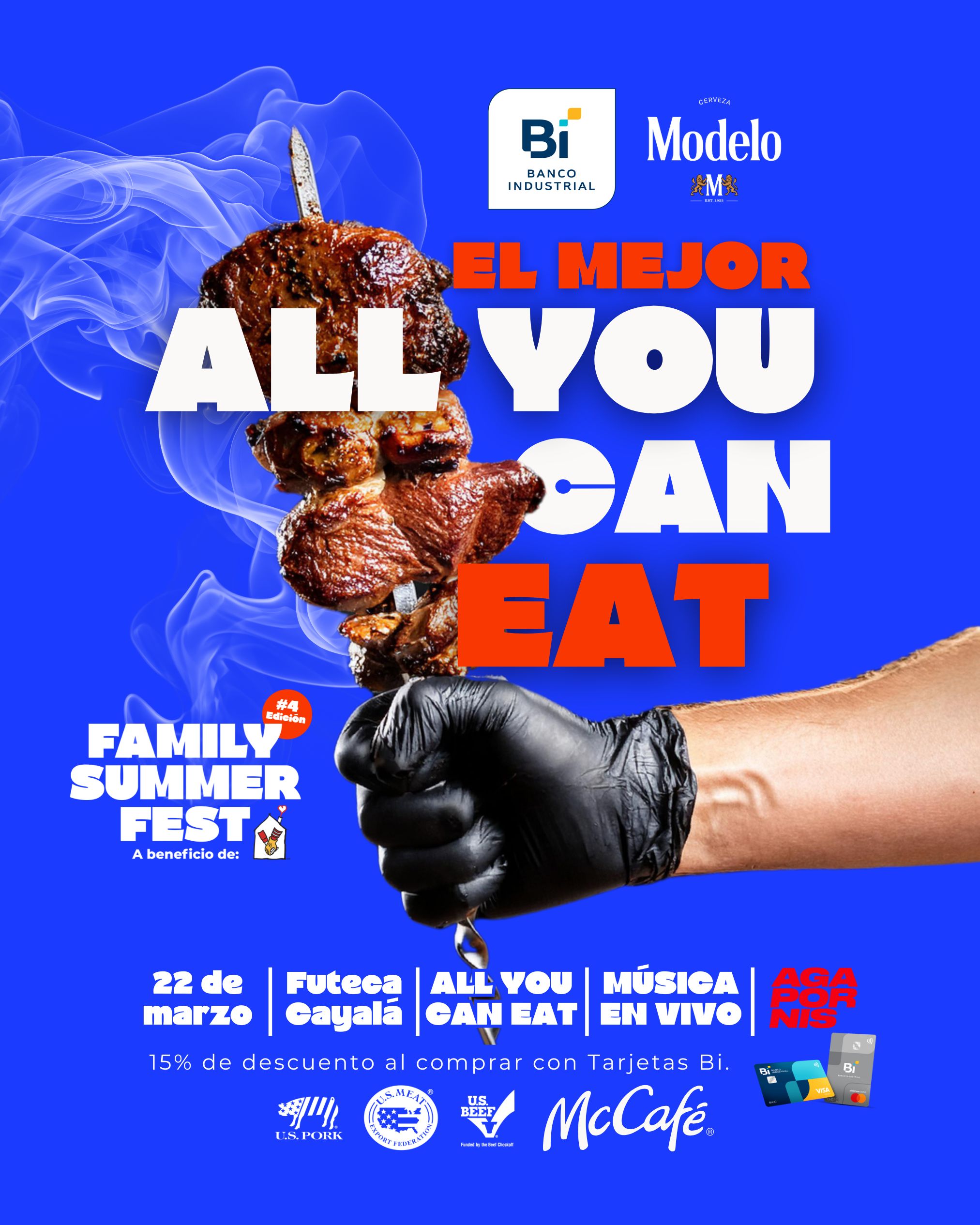 Durante el evento los asistentes podrán disfrutar de un “ALL YOU CAN EAT” de variedad de carnes, incluyendo puyazo, costillas, carnitas de pollo, alitas y mucho más.
